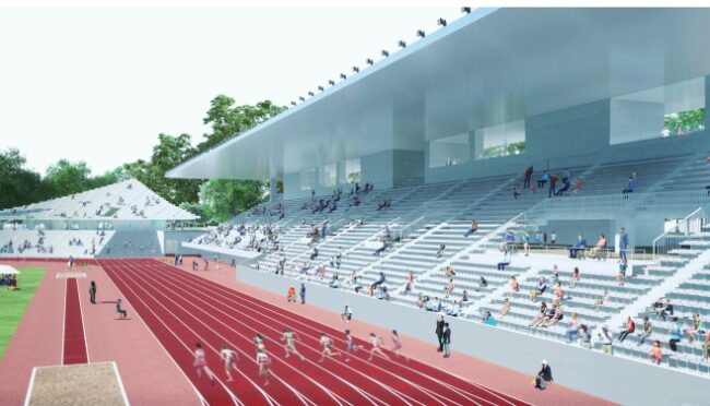松本のスカイパーク陸上競技場も3年後の国スポに向けて建設中です。