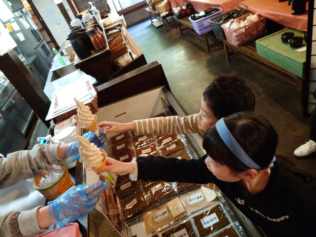味噌ソフトが食べたいと言われ、手作り体験のときにいただいたチケットで食べに行きました🍦