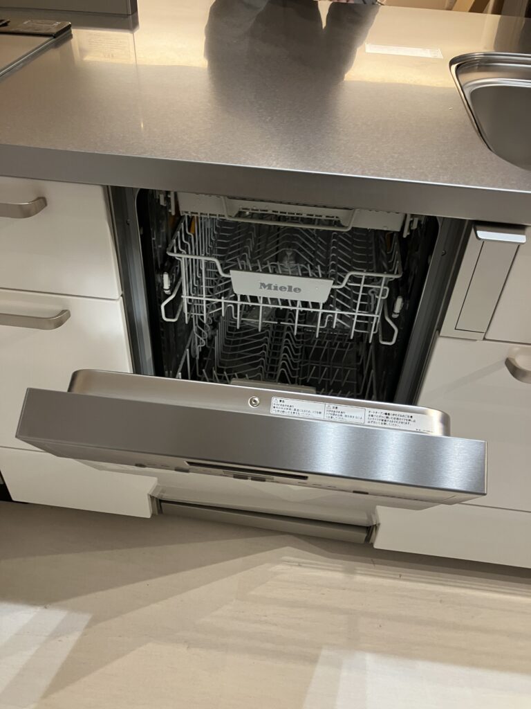 食洗器はミーレのフロントオープンタイプを採用