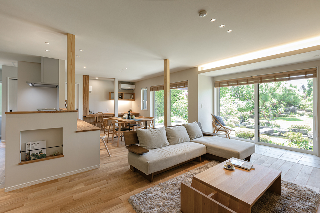 断熱・気密性能を徹底的に高めることで、冬の寒さを解消。エアコン1台で全館空調を実現し、1年を通して快適な温熱空間で過ごすことができます。ご夫婦と愛犬が心豊かに暮らす、温かく安心な住まいが完成しました。