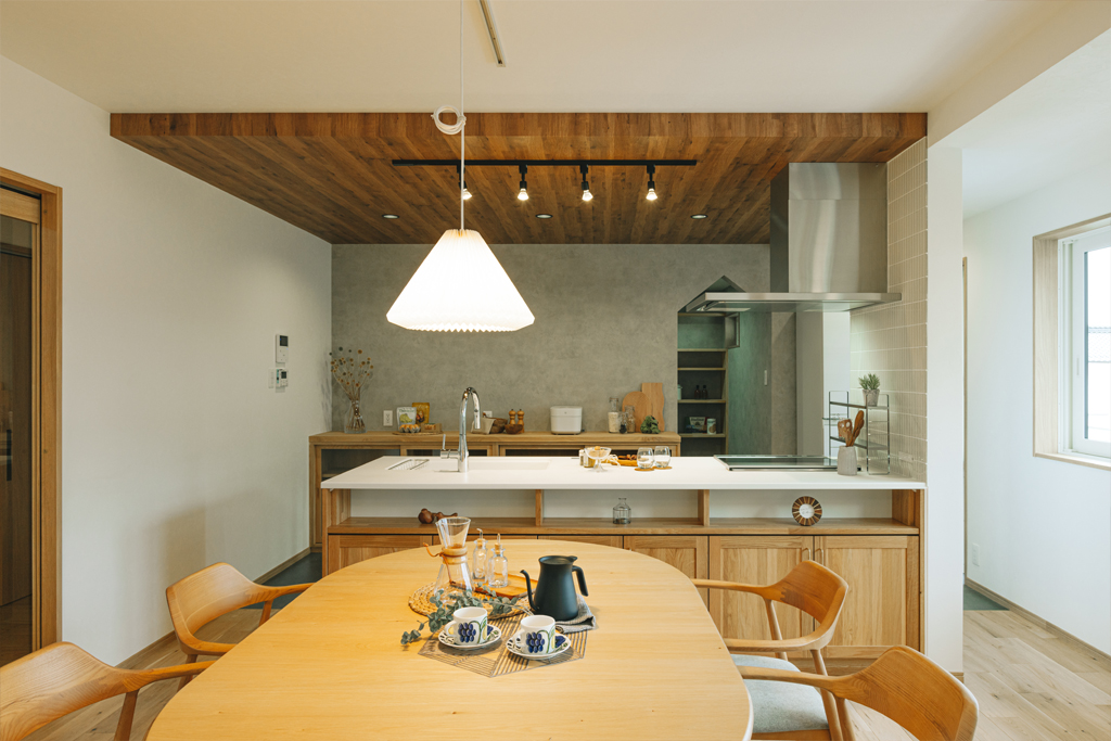 床や天井の木の質感が際立つようトーンも細かく調整。景色を望むキッチンには焙煎スペースを完備し、日常と趣味が豊かに交差する大人の住まいが完成しました。