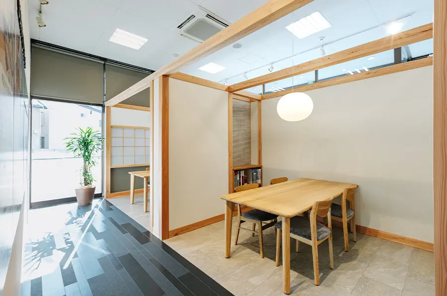 打ち合わせスペースは個室やキッズスペースもご用意。ご家族様でもお気軽にご来場ください。