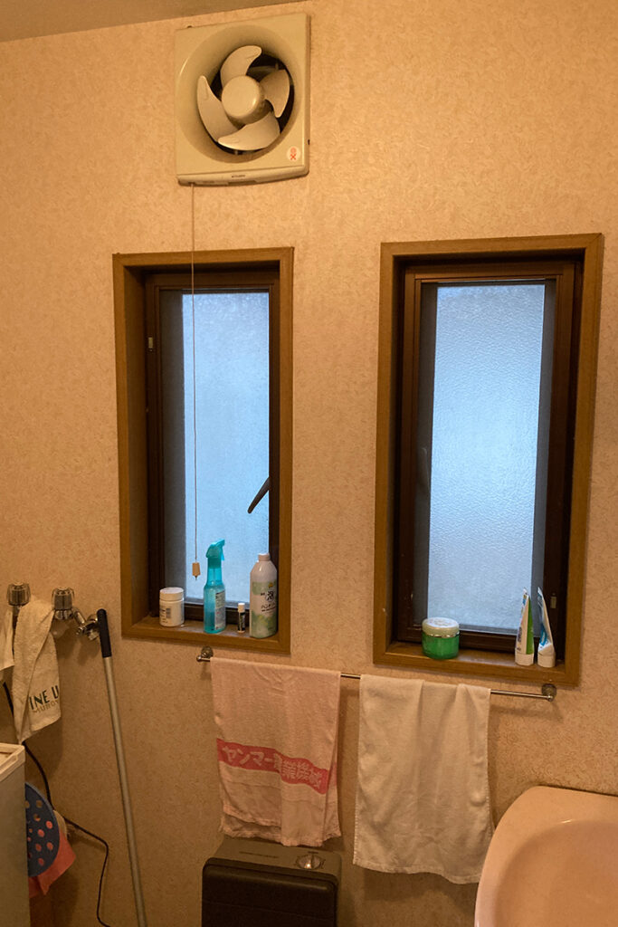 洗面脱衣室の洗面化粧台はLIXILのMVを採用。洗面化粧台の横には造作のカウンターを設置することで、使い勝手の良い空間になりました。