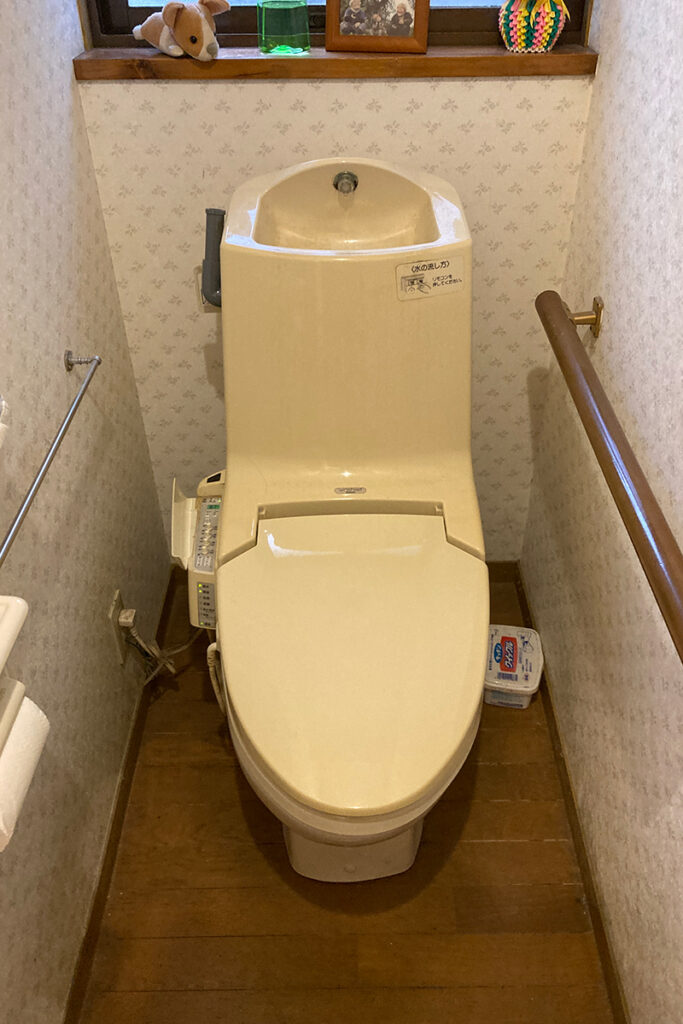 トイレはLIXILのベーシアハーモL。白を基調とした室内。窓から光も入り、明るく清潔感のある空間です。